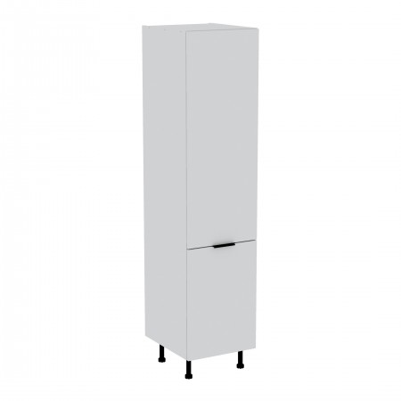Szafka kuchenna stojąca wysoka. Korpus i fronty wykonane są z płyty laminowanej o grubości 18mm w kolorze popielatym. Otwierana w lewą stronę. Posiada czarne matowe krawędziowe uchwyty.