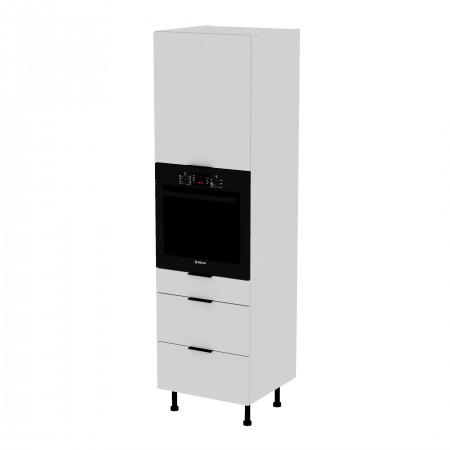 Szafka kuchenna stojąca pod piekarnik. Korpus i front z płyty laminowanej o grubości 18mm w kolorze popielatym. Uchylany do dołu. Posiada czarne matowe krawędziowe uchwyty.