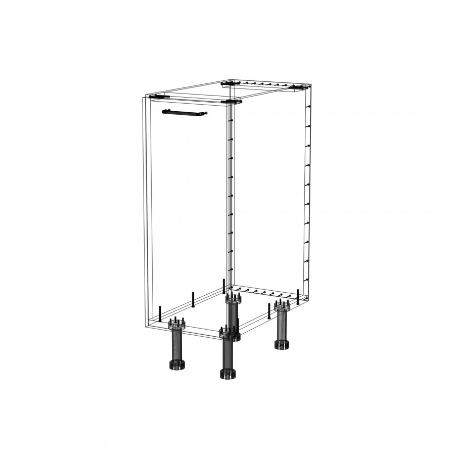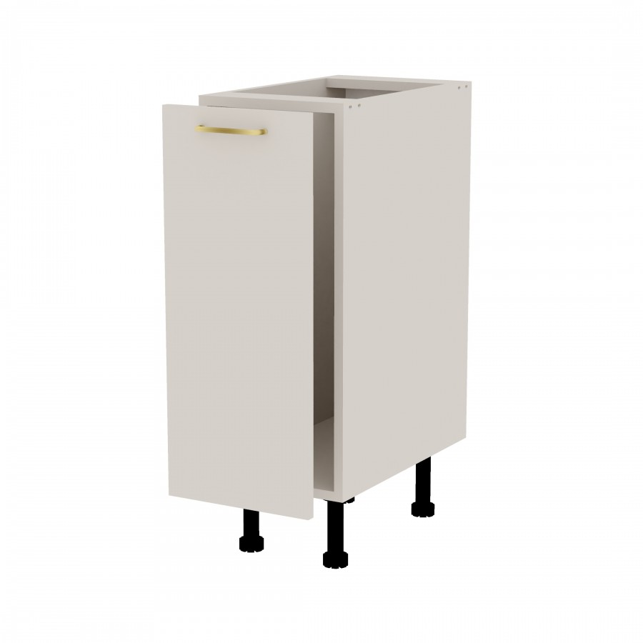 Szafka kuchenna stojąca do kosza cargo. Korpus i front wykonany jest z płyty laminowanej o grubości 18mm w kolorze kaszmirowym. Posiada złoty szczotkowany uchwyt. Nie zawiera kosza cargo.