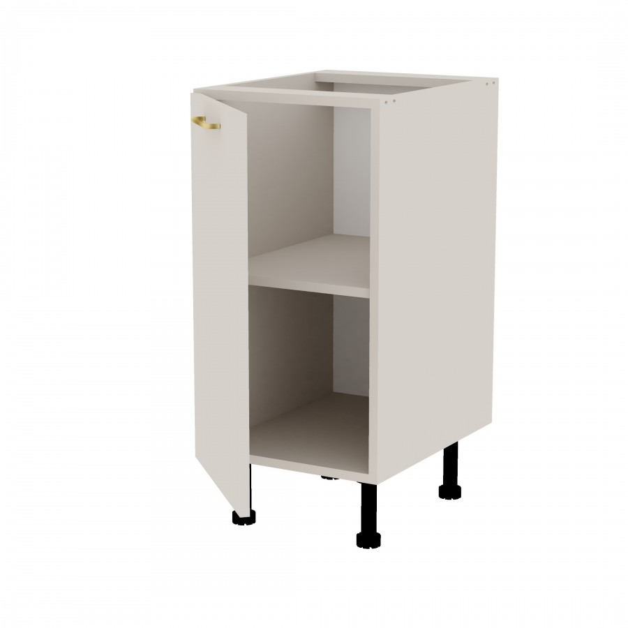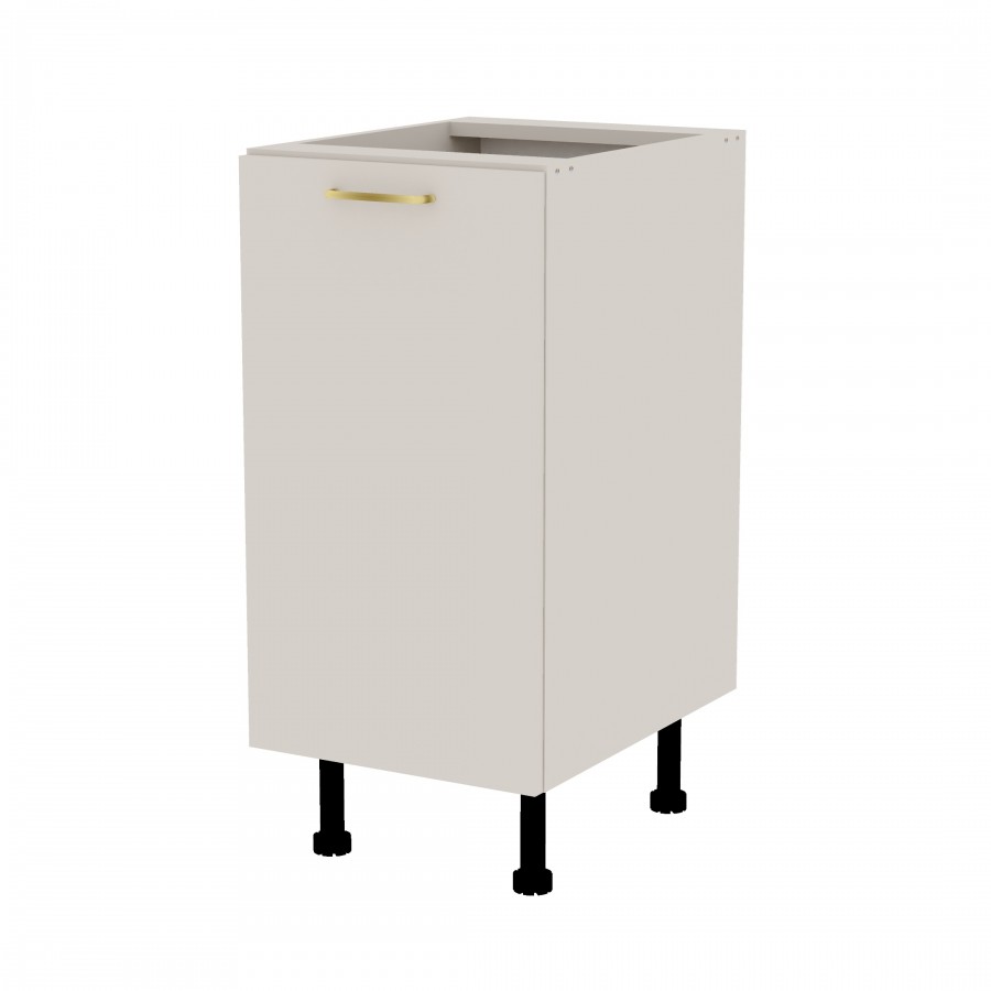 Szafka kuchenna stojąca z półką. Korpus i front wykonany jest z płyty laminowanej o grubości 18mm w kolorze kaszmirowym. Otwierana w lewą stronę. Posiada złoty szczotkowany uchwyt.