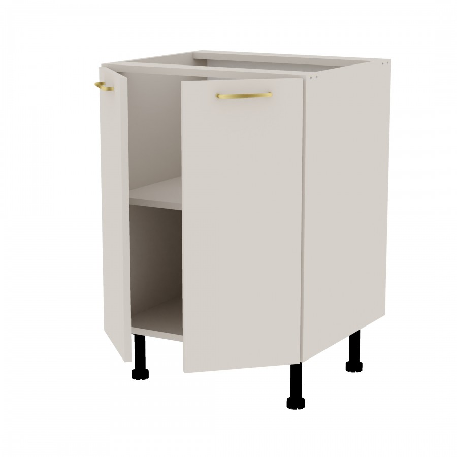 Szafka kuchenna stojąca z półką. Korpus i fronty wykonane są z płyty laminowanej o grubości 18mm w kolorze kaszmirowym. Otwierana w lewą i prawą stronę. Posiada złote szczotkowane uchwyty.