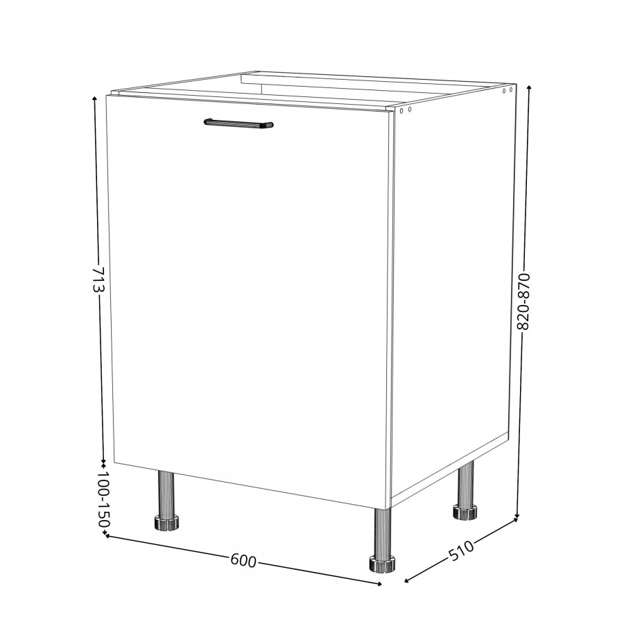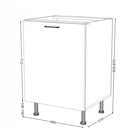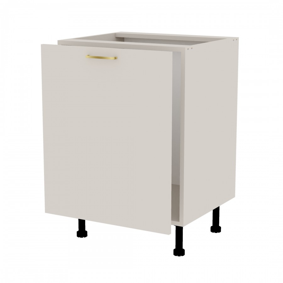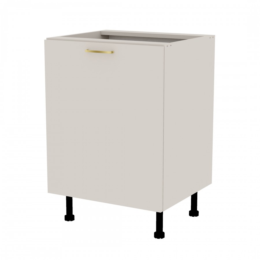 Szafka kuchenna stojąca do kosza cargo. Korpus i front wykonany jest z płyty laminowanej o grubości 18mm w kolorze kaszmirowym. Posiada złoty szczotkowany uchwyt. Nie zawiera kosza cargo.