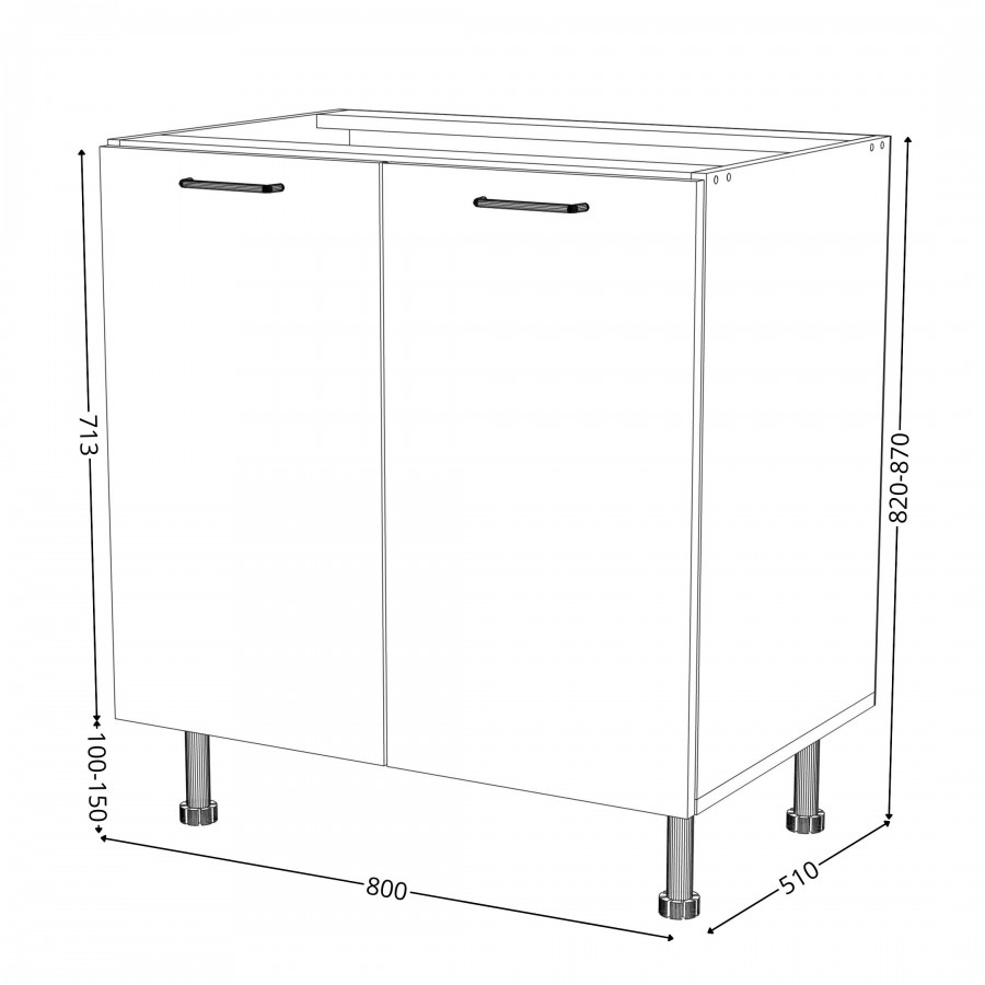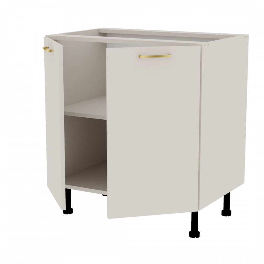 Szafka kuchenna stojąca z półką. Korpus i fronty wykonane są z płyty laminowanej o grubości 18mm w kolorze kaszmirowym. Otwierana w lewą i prawą stronę. Posiada złote szczotkowane uchwyty.