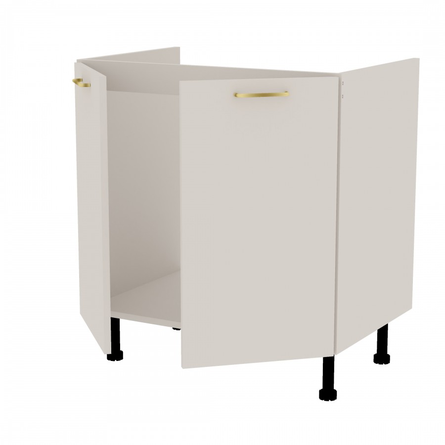 Szafka kuchenna stojąca zlewozmywakowa. Korpus i fronty wykonane są z płyty laminowanej o grubości 18mm w kolorze kaszmirowym. Otwierana w lewą i prawą stronę. Posiada złote szczotkowane uchwyty.
