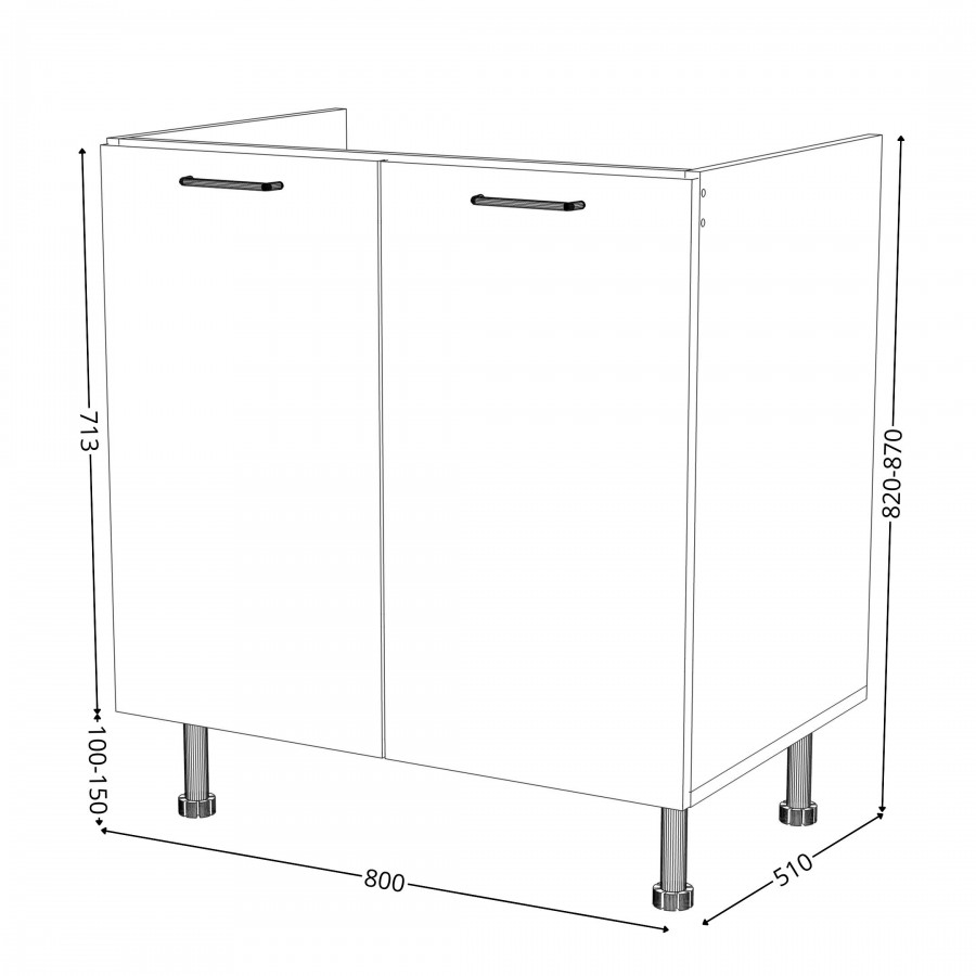 Regulowane nóżki dostępne są w wysokościach 100mm i 150mm.