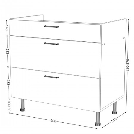 LAMI ECON kaszmirowy ks_S90_3S szafka kuchenna stojąca