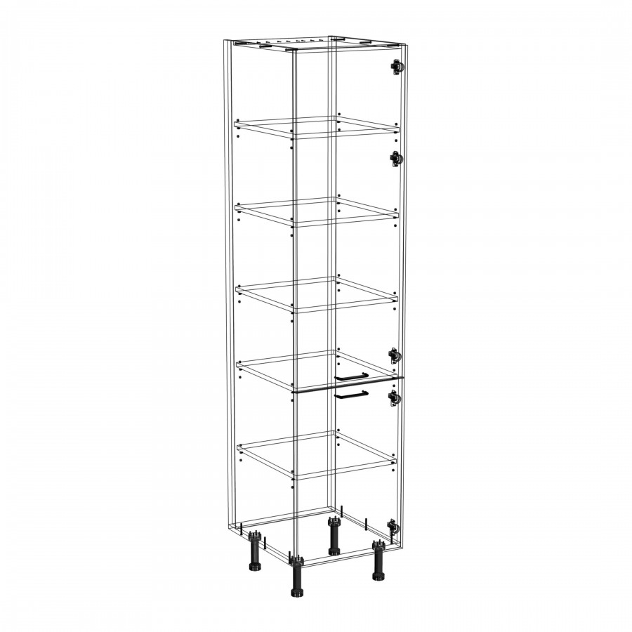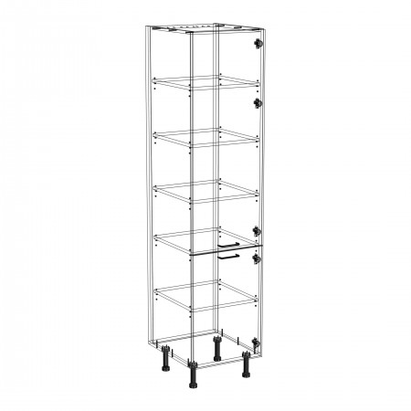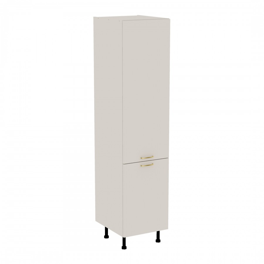 Szafka kuchenna stojąca wysoka. Korpus i fronty wykonane są z płyty laminowanej o grubości 18mm w kolorze kaszmirowym. Otwierana w prawą stronę. Posiada złote szczotkowane uchwyty.