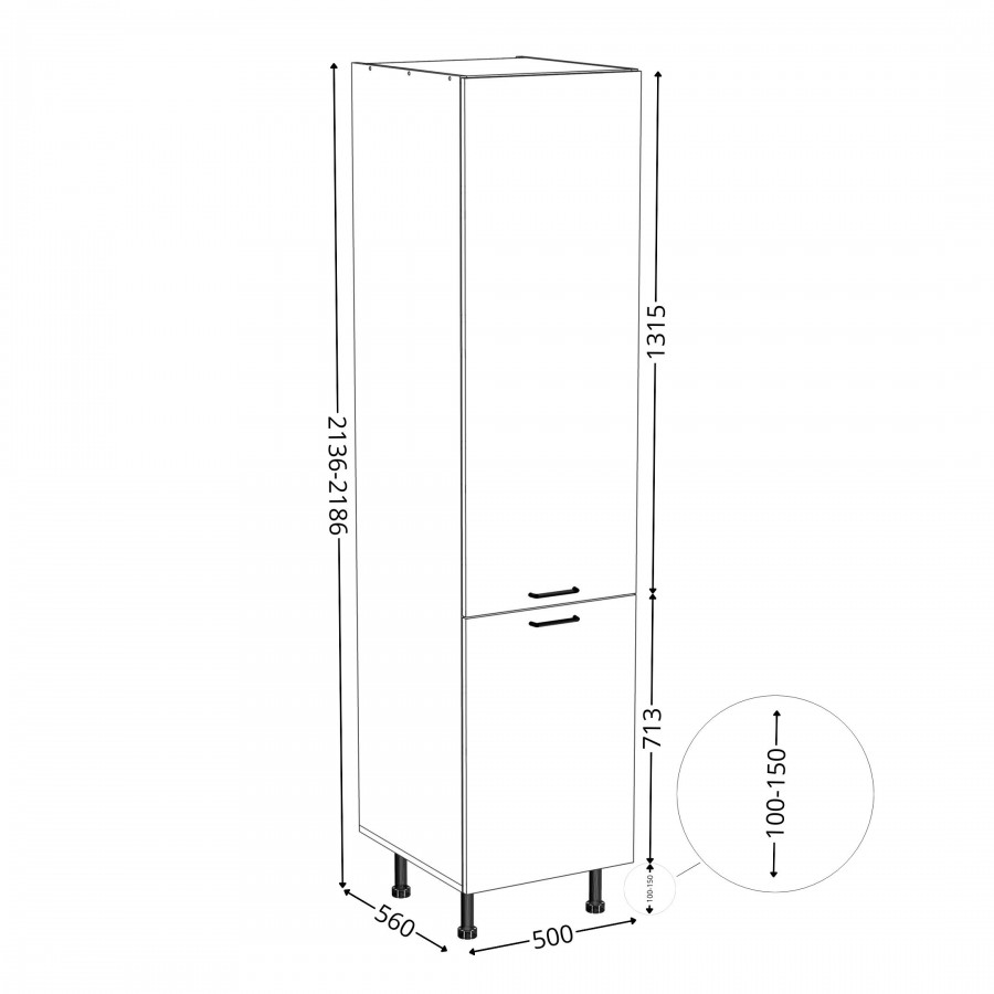 Regulowane nóżki dostępne są w wysokościach 100mm i 150mm.