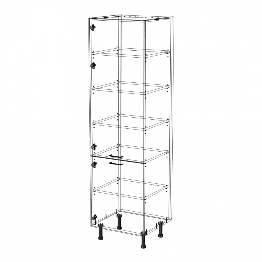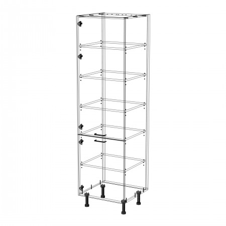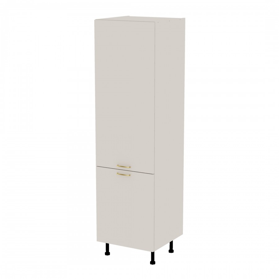 Szafka kuchenna stojąca wysoka. Korpus i fronty wykonane są z płyty laminowanej o grubości 18mm w kolorze kaszmirowym. Otwierana w lewą stronę. Posiada złote szczotkowane uchwyty.