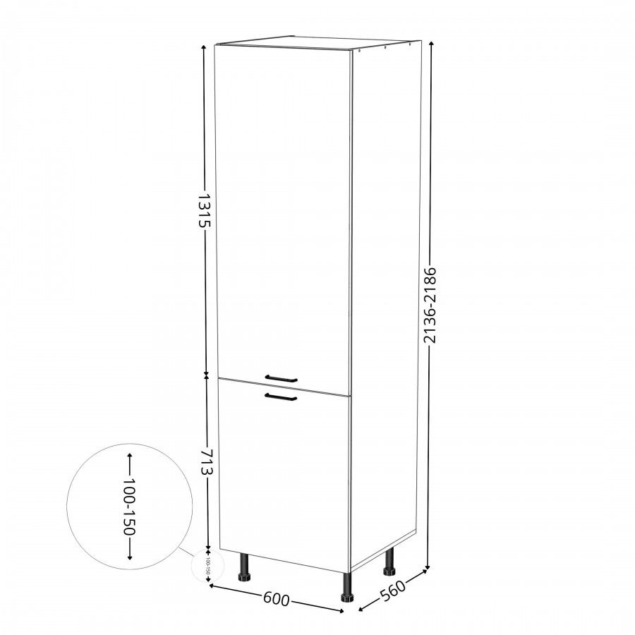 Regulowane nóżki dostępne są w wysokościach 100mm i 150mm.
