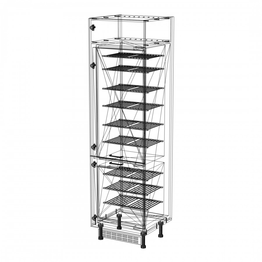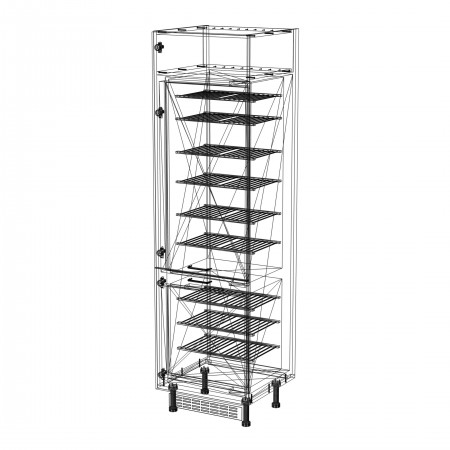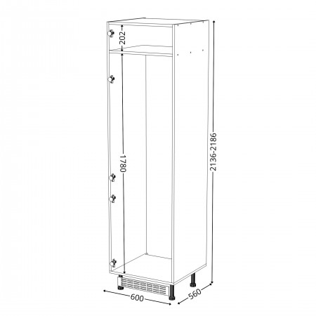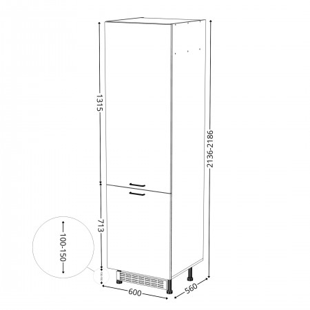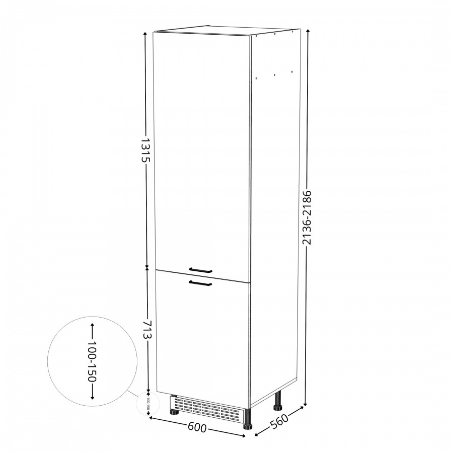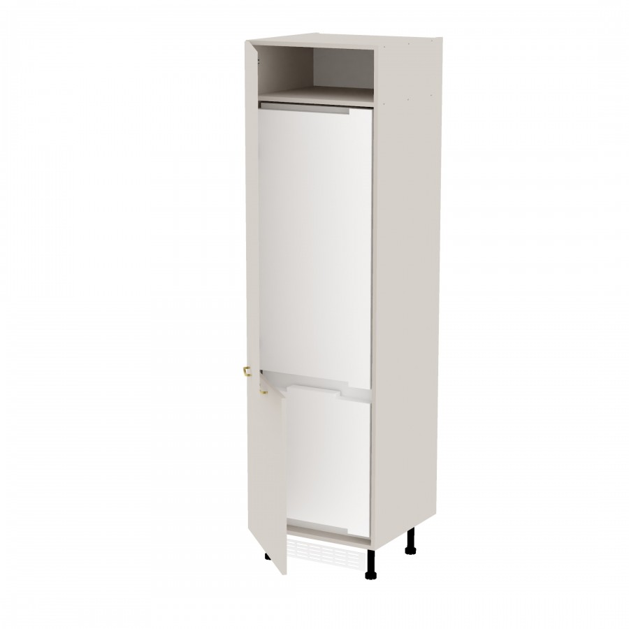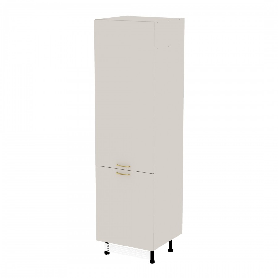 Szafka kuchenna stojąca wysoka do zabudowy lodówki. Korpus i fronty wykonane są z płyty laminowanej o grubości 18mm w kolorze kaszmirowym. Otwierana w lewą stronę. Posiada złote szczotkowane uchwyty.