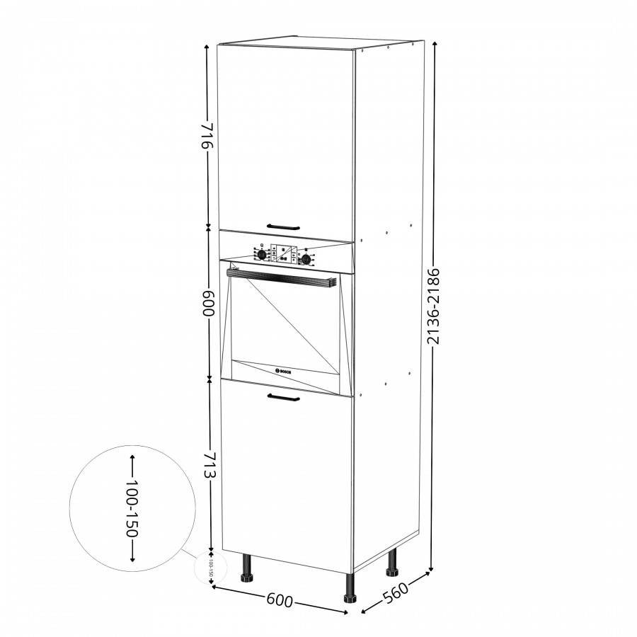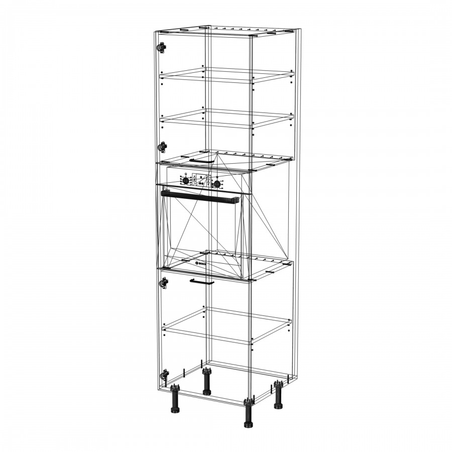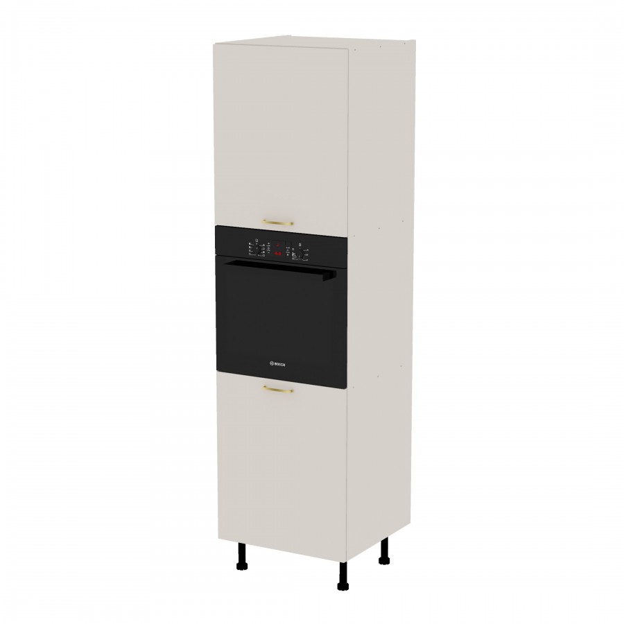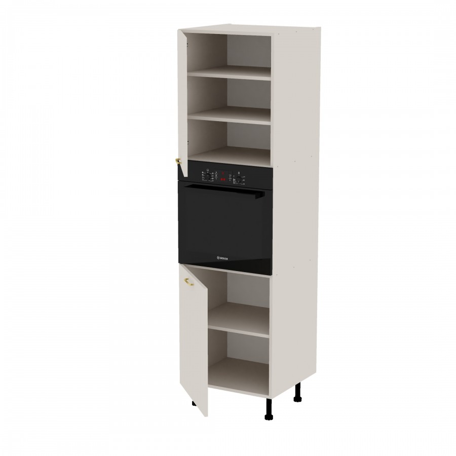 Szafka kuchenna stojąca wysoka do zabudowy piekarnika. Korpus i fronty wykonane są z płyty laminowanej o grubości 18mm w kolorze kaszmirowym. Otwierana w lewą stronę. Posiada złote szczotkowane uchwyty.