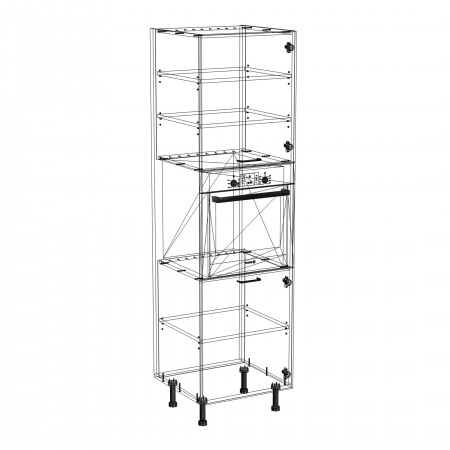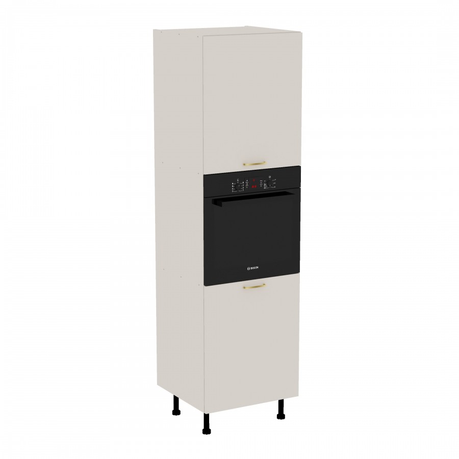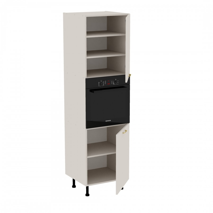 Szafka kuchenna stojąca wysoka do zabudowy piekarnika. Korpus i fronty wykonane są z płyty laminowanej o grubości 18mm w kolorze kaszmirowym. Otwierana w prawą stronę. Posiada złote szczotkowane uchwyty.