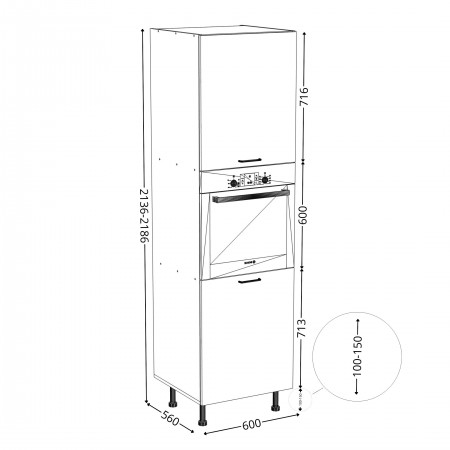 Regulowane nóżki dostępne są w wysokościach 100mm i 150mm.