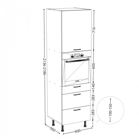 Regulowane nóżki dostępne są w wysokościach 100mm i 150mm.