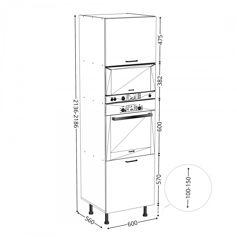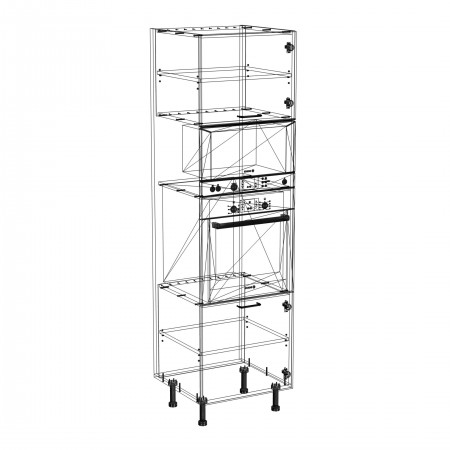 Szafka kuchenna stojąca wysoka do zabudowy piekarnika i mikrofali. Korpus i fronty wykonane są z płyty laminowanej o grubości 18mm w kolorze kaszmirowym. Otwierana w prawą stronę. Posiada złote szczotkowane uchwyty.