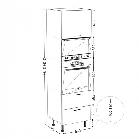 Regulowane nóżki dostępne są w wysokościach 100mm i 150mm.