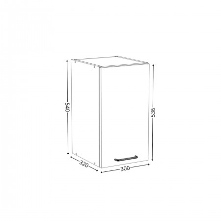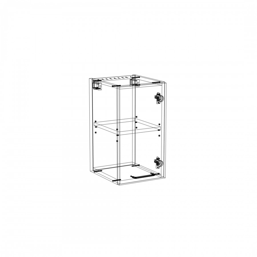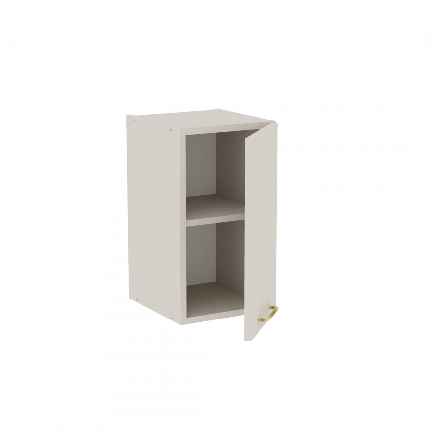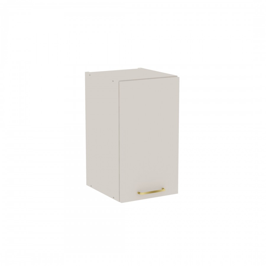 Szafka kuchenna wisząca. Korpus i front wykonane są z płyty laminowanej o grubości 18mm w kolorze kaszmirowym. Otwierana w prawą stronę. Posiada złoty szczotkowany uchwyt.