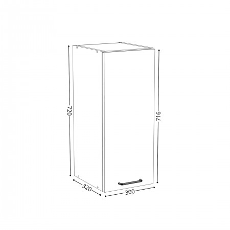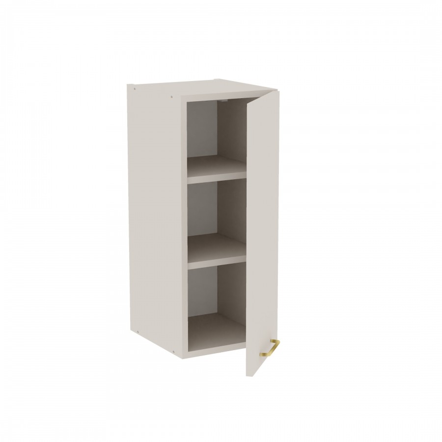 Szafka kuchenna wisząca. Korpus i front wykonane są z płyty laminowanej o grubości 18mm w kolorze kaszmirowym. Otwierana w prawą stronę. Posiada złoty szczotkowany uchwyt.