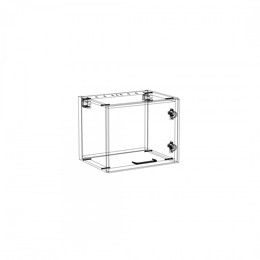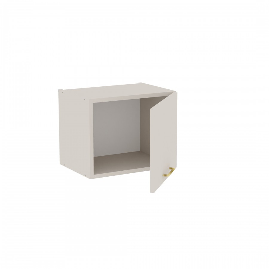 Szafka kuchenna wisząca. Korpus i front wykonane są z płyty laminowanej o grubości 18mm w kolorze kaszmirowym. Otwierana w prawą stronę. Posiada złoty szczotkowany uchwyt.