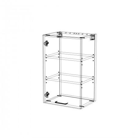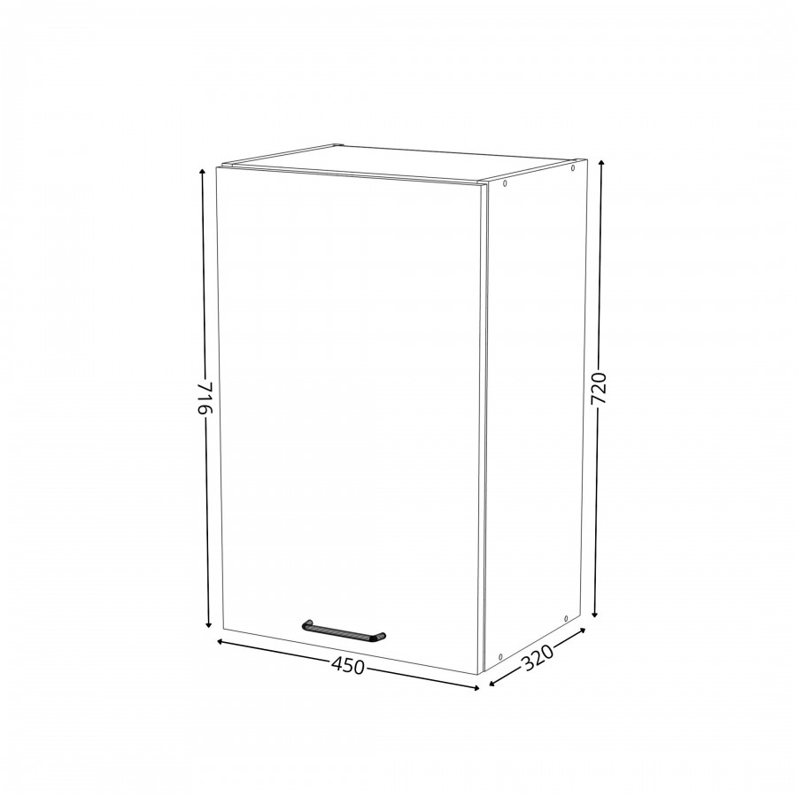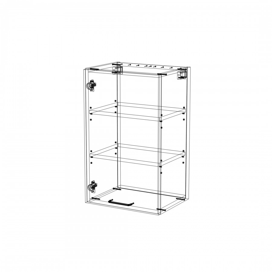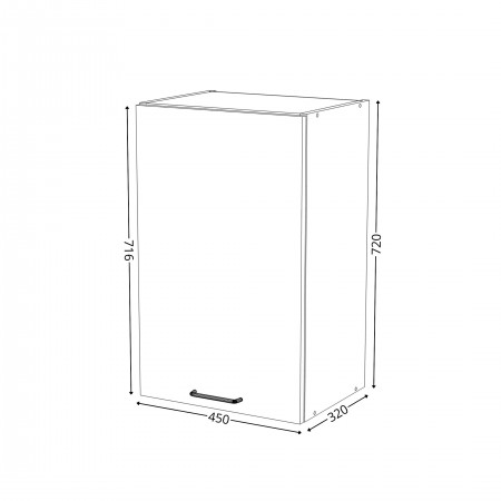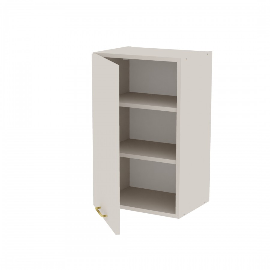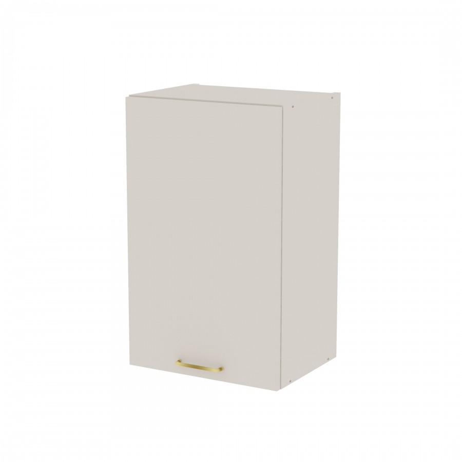 Szafka kuchenna wisząca. Korpus i front wykonane są z płyty laminowanej o grubości 18mm w kolorze kaszmirowym. Otwierana w lewą stronę. Posiada złoty szczotkowany uchwyt.