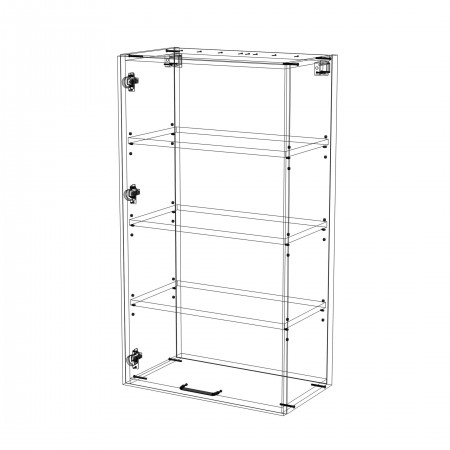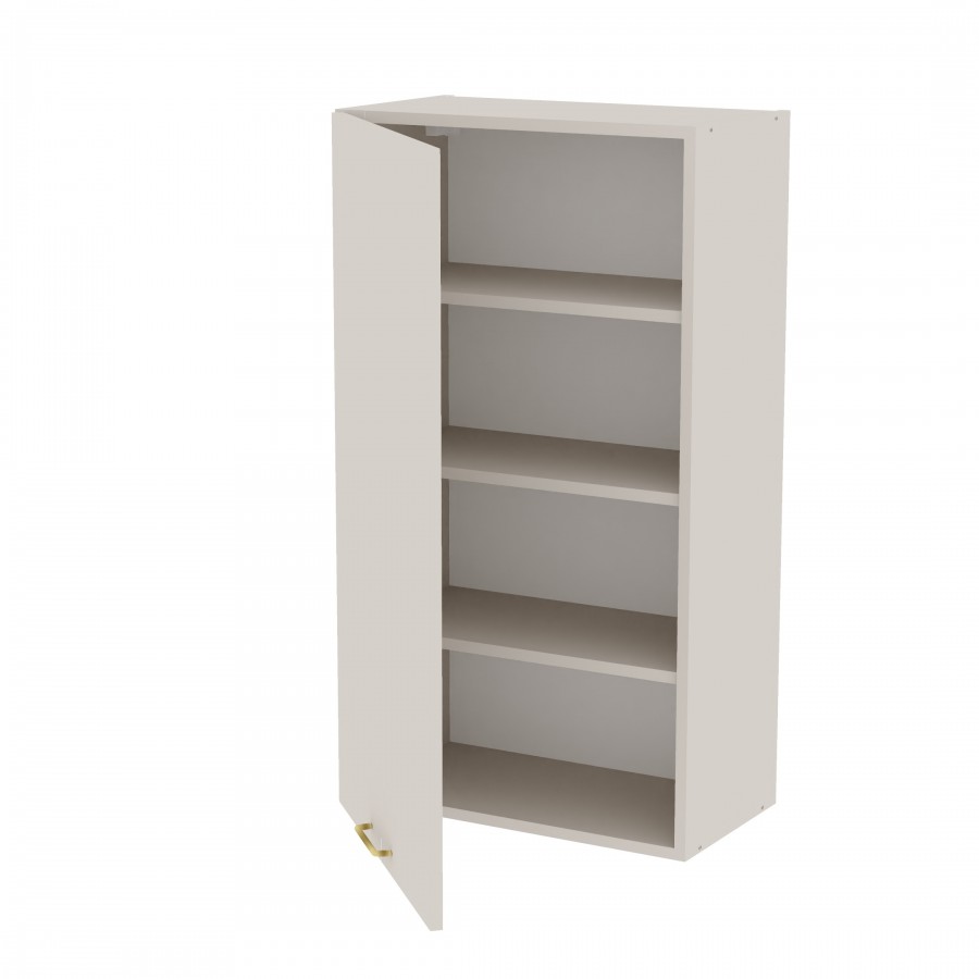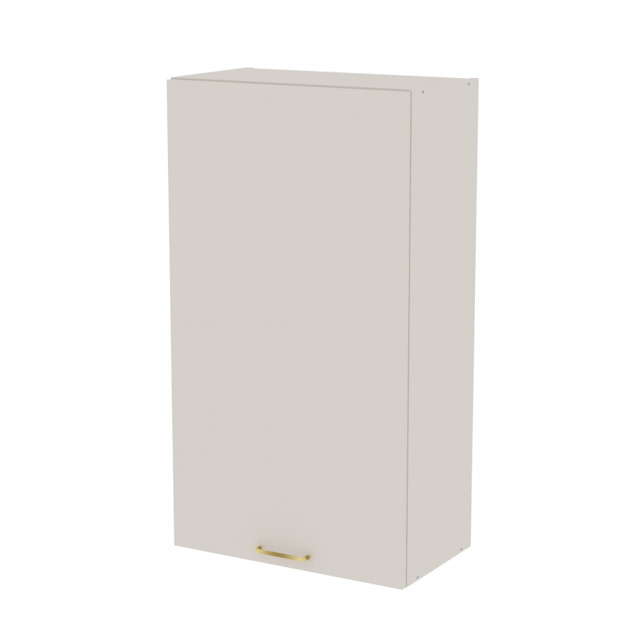 Szafka kuchenna wisząca. Korpus i front wykonane są z płyty laminowanej o grubości 18mm w kolorze kaszmirowym. Otwierana w lewą stronę. Posiada złoty szczotkowany uchwyt.