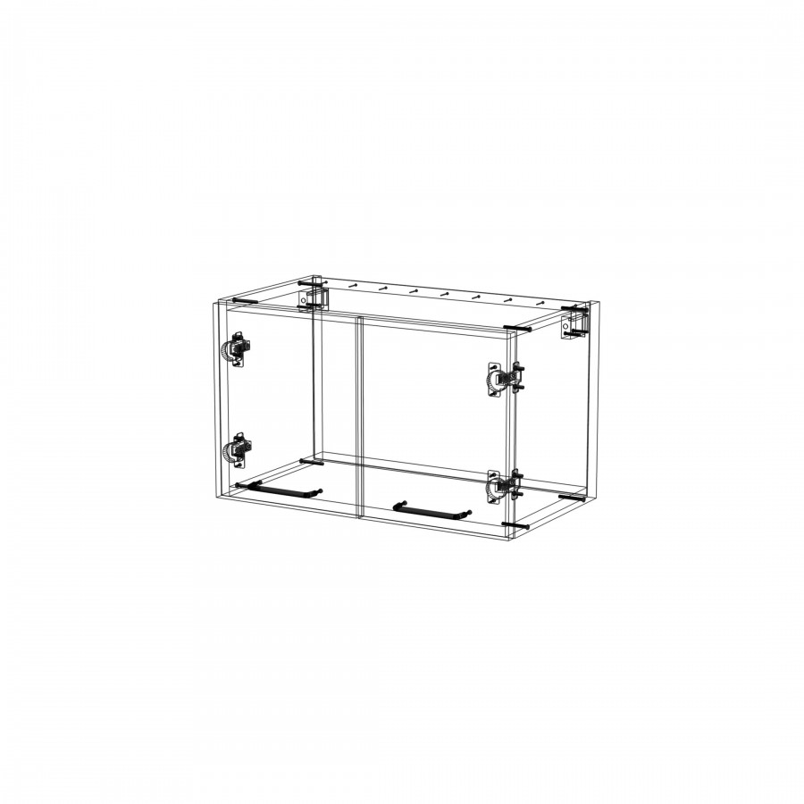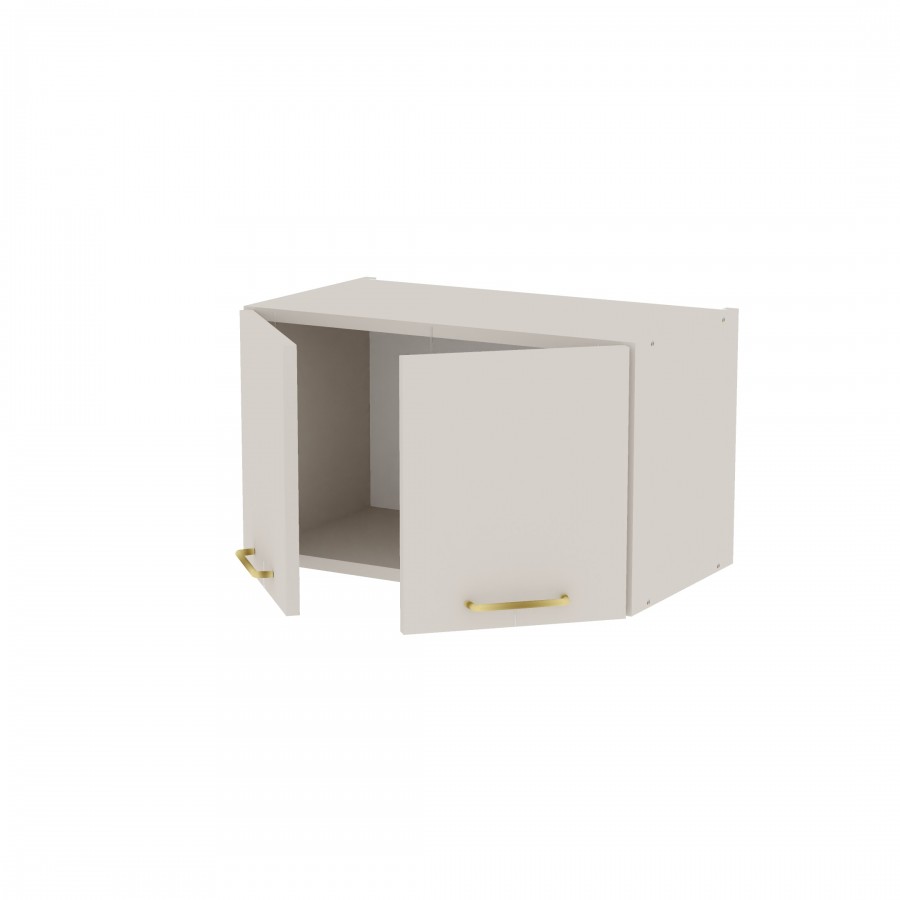 Szafka kuchenna wisząca. Korpus i fronty wykonane są z płyty laminowanej o grubości 18mm w kolorze kaszmirowym. Otwierana w lewą i prawą stronę. Posiada złote szczotkowane uchwyty.