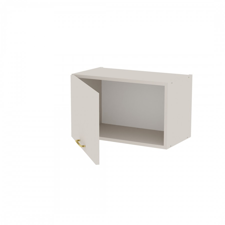 Szafka kuchenna wisząca. Korpus i front wykonane są z płyty laminowanej o grubości 18mm w kolorze kaszmirowym. Otwierana w lewą stronę. Posiada złoty szczotkowany uchwyt.