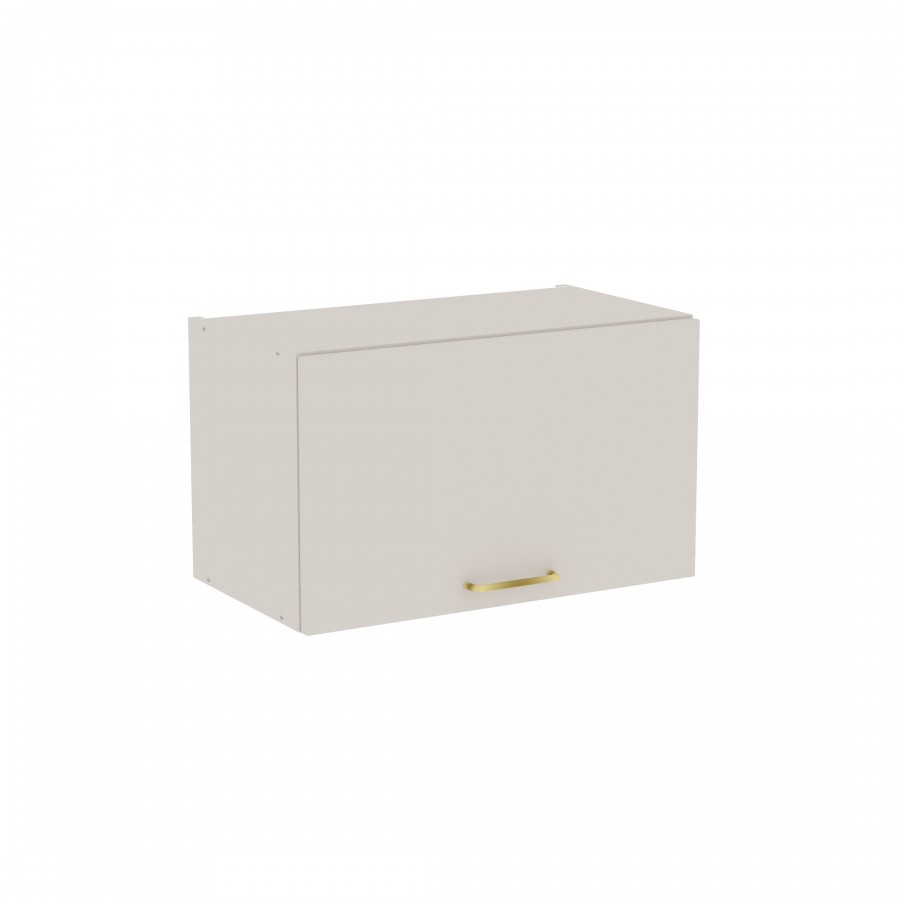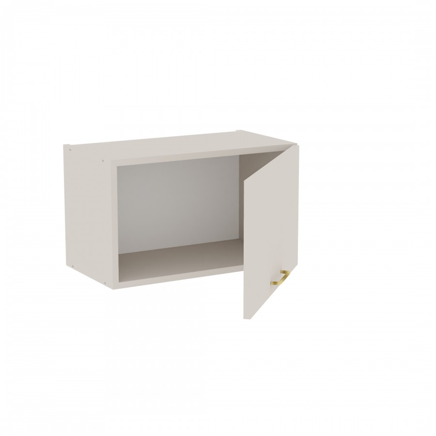Szafka kuchenna wisząca. Korpus i front wykonane są z płyty laminowanej o grubości 18mm w kolorze kaszmirowym. Otwierana w prawą stronę. Posiada złoty szczotkowany uchwyt.