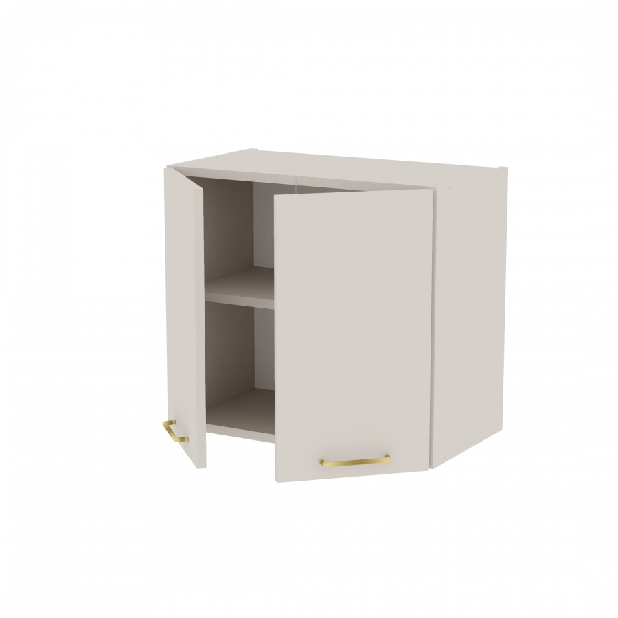 Szafka kuchenna wisząca. Korpus i fronty wykonane są z płyty laminowanej o grubości 18mm w kolorze kaszmirowym. Otwierana w lewą i prawą stronę. Posiada złote szczotkowane uchwyty.
