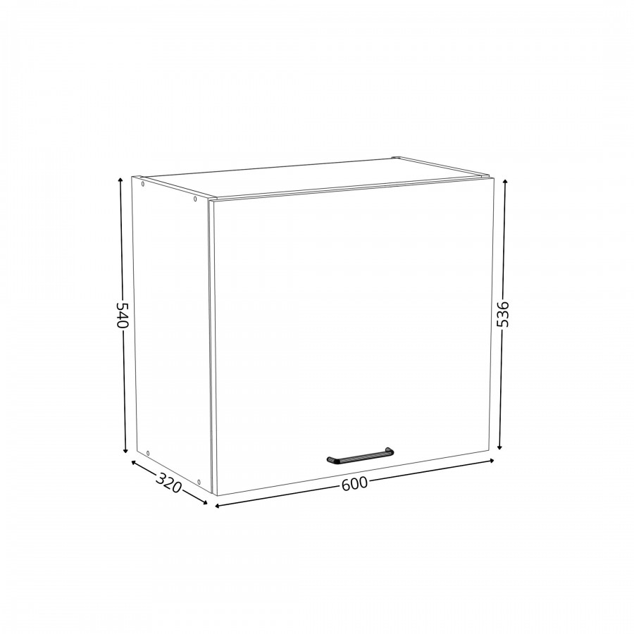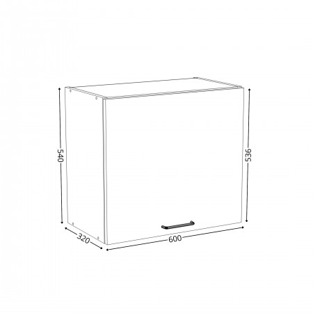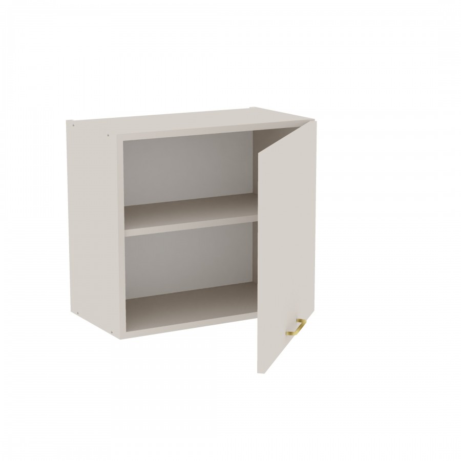Szafka kuchenna wisząca. Korpus i front wykonane są z płyty laminowanej o grubości 18mm w kolorze kaszmirowym. Otwierana w prawą stronę. Posiada złoty szczotkowany uchwyt.