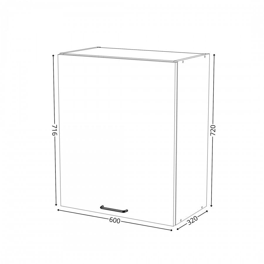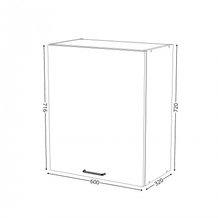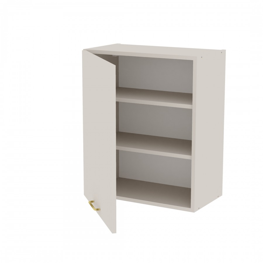 Szafka kuchenna wisząca. Korpus i front wykonane są z płyty laminowanej o grubości 18mm w kolorze kaszmirowym. Otwierana w lewą stronę. Posiada złoty szczotkowany uchwyt.