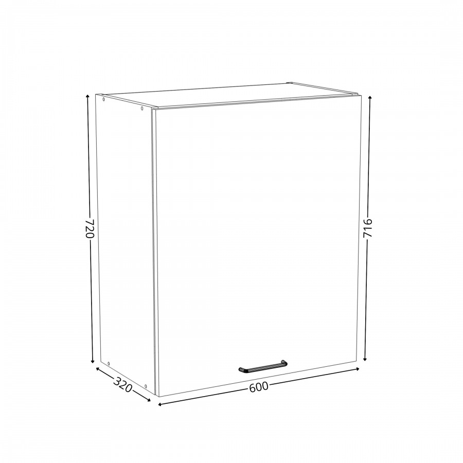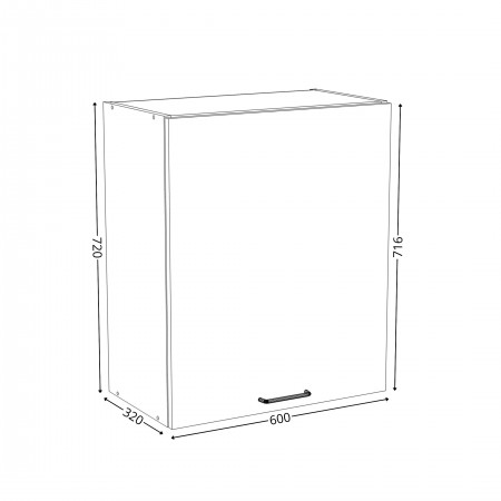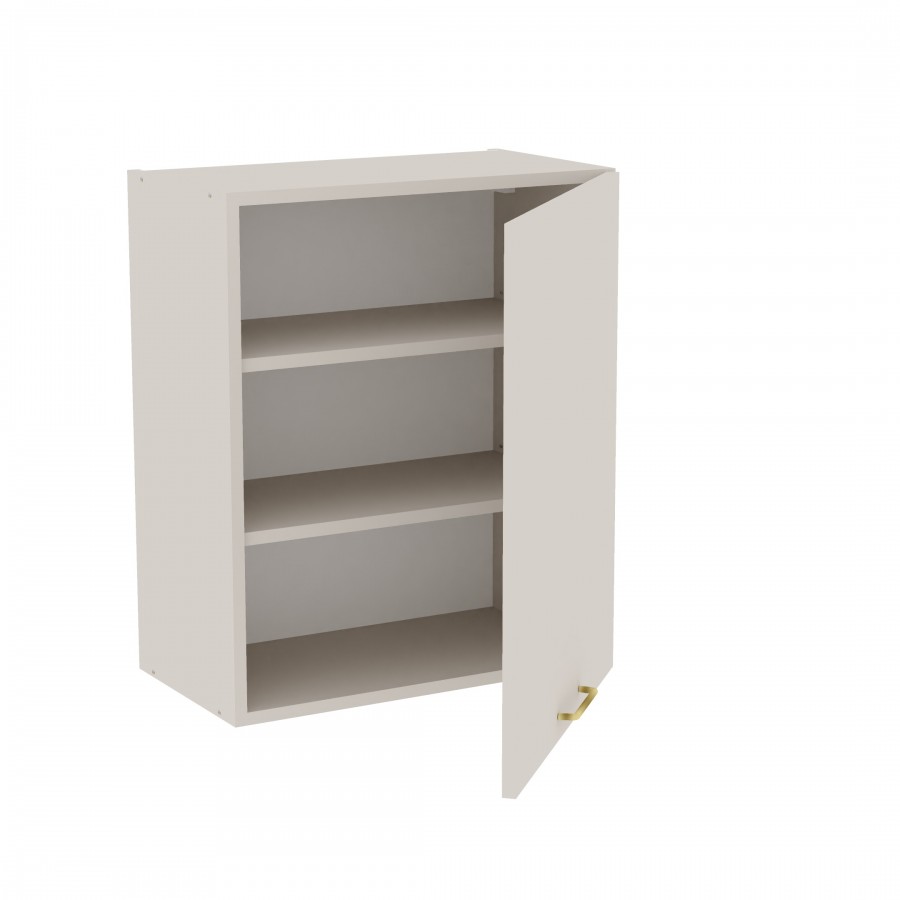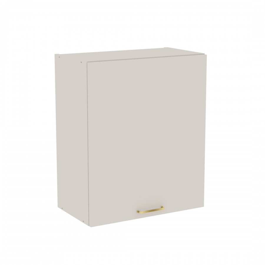 Szafka kuchenna wisząca. Korpus i front wykonane są z płyty laminowanej o grubości 18mm w kolorze kaszmirowym. Otwierana w prawą stronę. Posiada złoty szczotkowany uchwyt.
