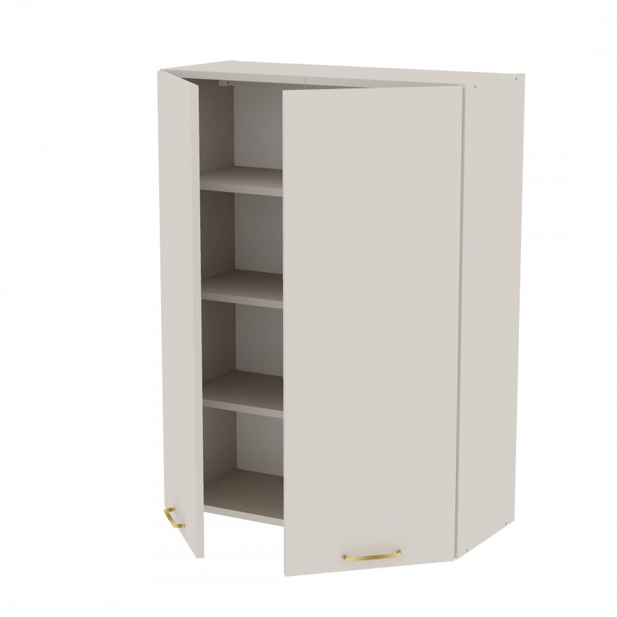 Szafka kuchenna wisząca. Korpus i fronty wykonane są z płyty laminowanej o grubości 18mm w kolorze kaszmirowym. Otwierana w lewą i prawą stronę. Posiada złote szczotkowane uchwyty.