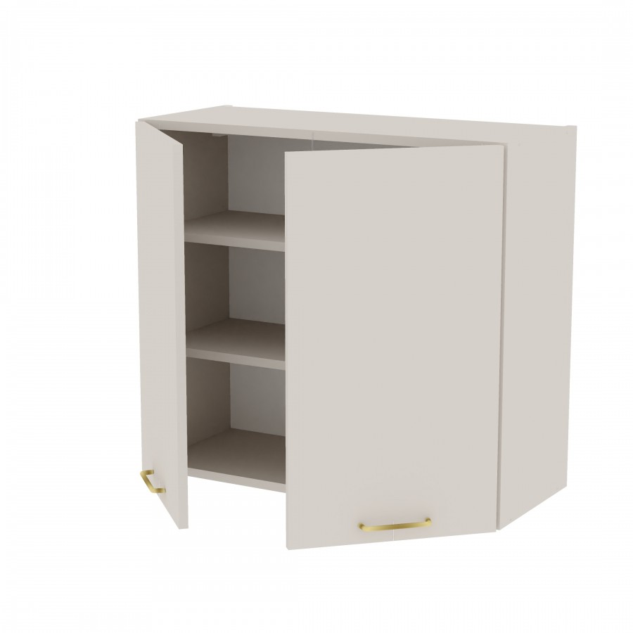 Szafka kuchenna wisząca. Korpus i fronty wykonane są z płyty laminowanej o grubości 18mm w kolorze kaszmirowym. Otwierana w lewą i prawą stronę. Posiada złote szczotkowane uchwyty.