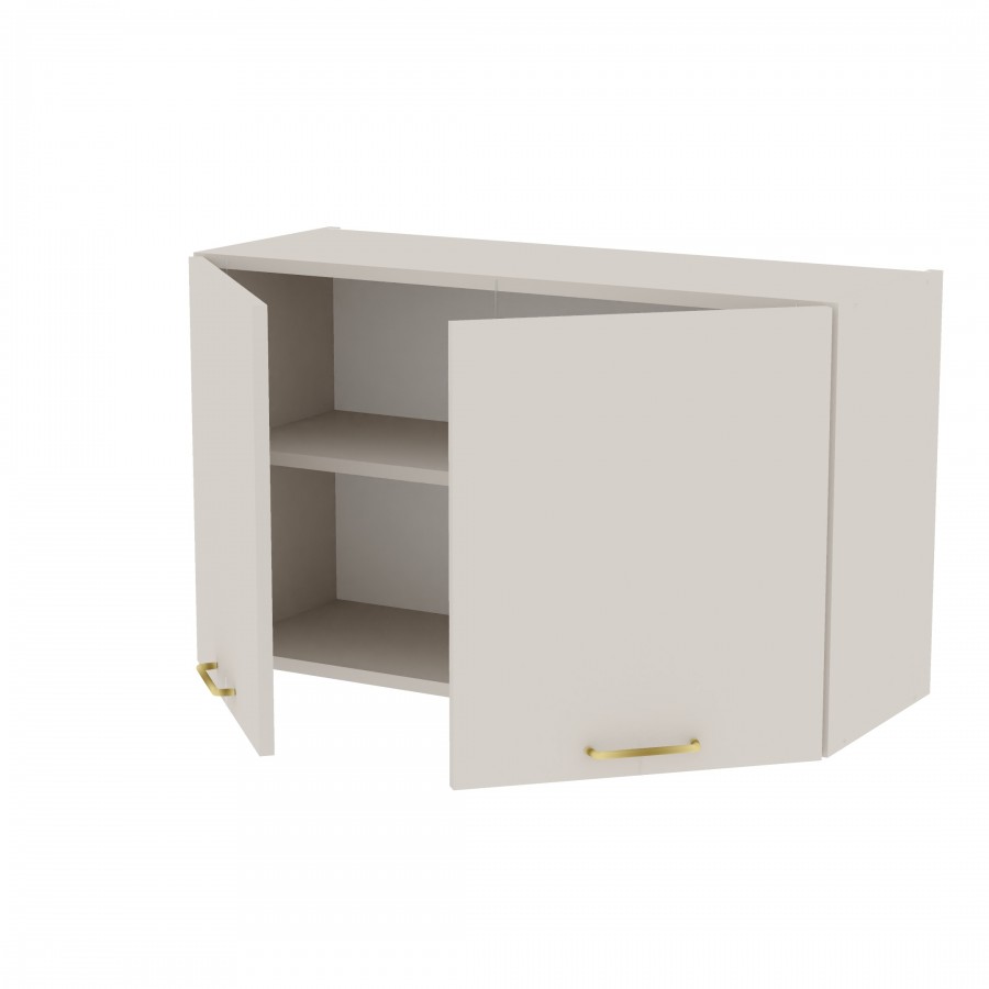 Szafka kuchenna wisząca. Korpus i fronty wykonane są z płyty laminowanej o grubości 18mm w kolorze kaszmirowym. Otwierana w lewą i prawą stronę. Posiada złote szczotkowane uchwyty.