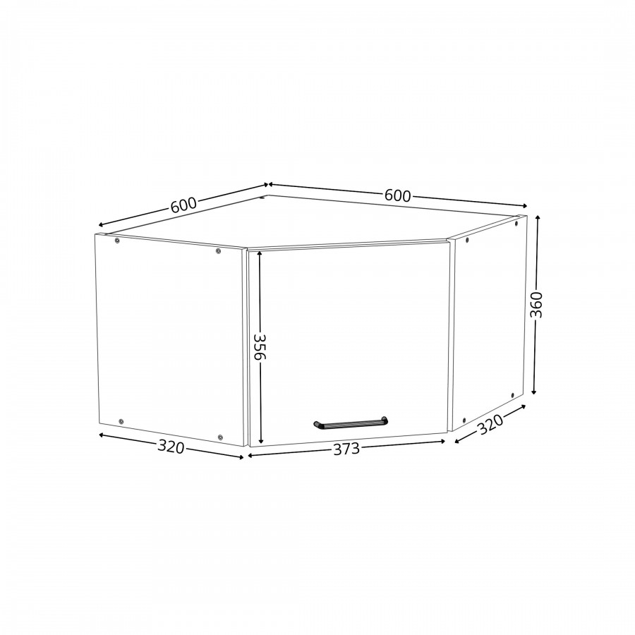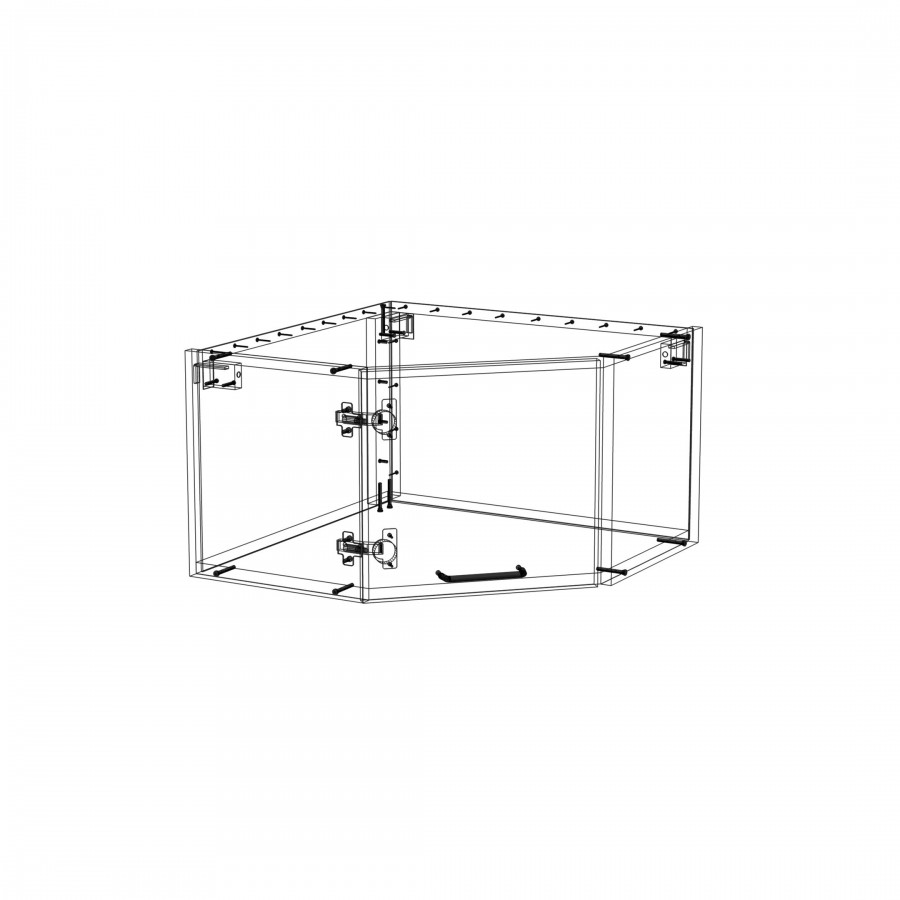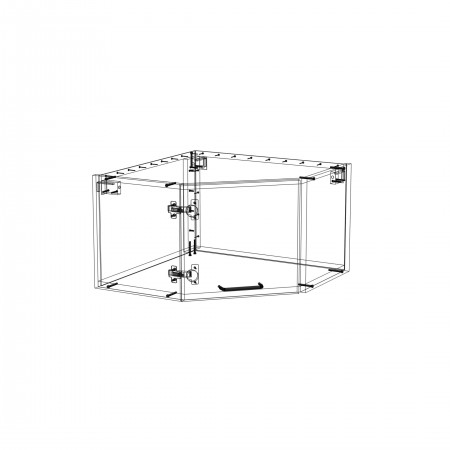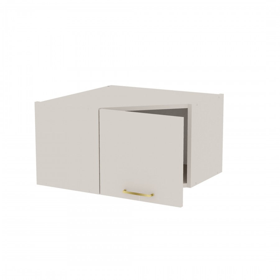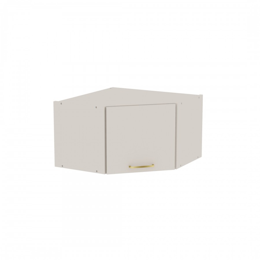 Szafka kuchenna wisząca narożna. Korpus i front wykonane są z płyty laminowanej o grubości 18mm w kolorze kaszmirowym. Otwierana w lewą stronę. Posiada złoty szczotkowany uchwyt.