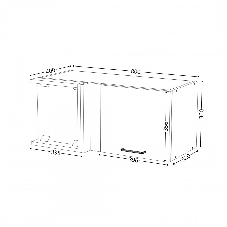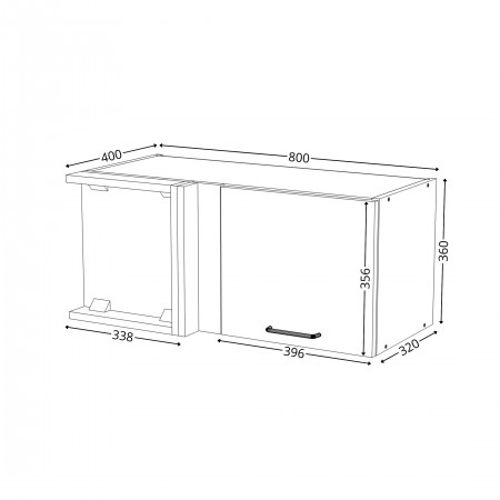 Szafka kuchenna wisząca narożna. Korpus i front wykonane są z płyty laminowanej o grubości 18mm w kolorze kaszmirowym. Otwierana w lewą stronę. Posiada złoty szczotkowany uchwyt.